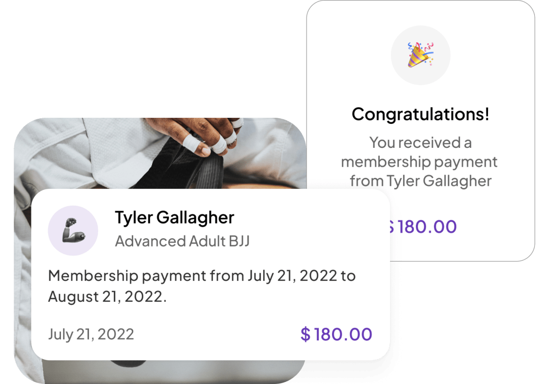 Keep your focus on martial arts, not payment hassles. Our software offers streamlined membership payment processing with low rates - just 2.9% and 30 cents per successful payment.